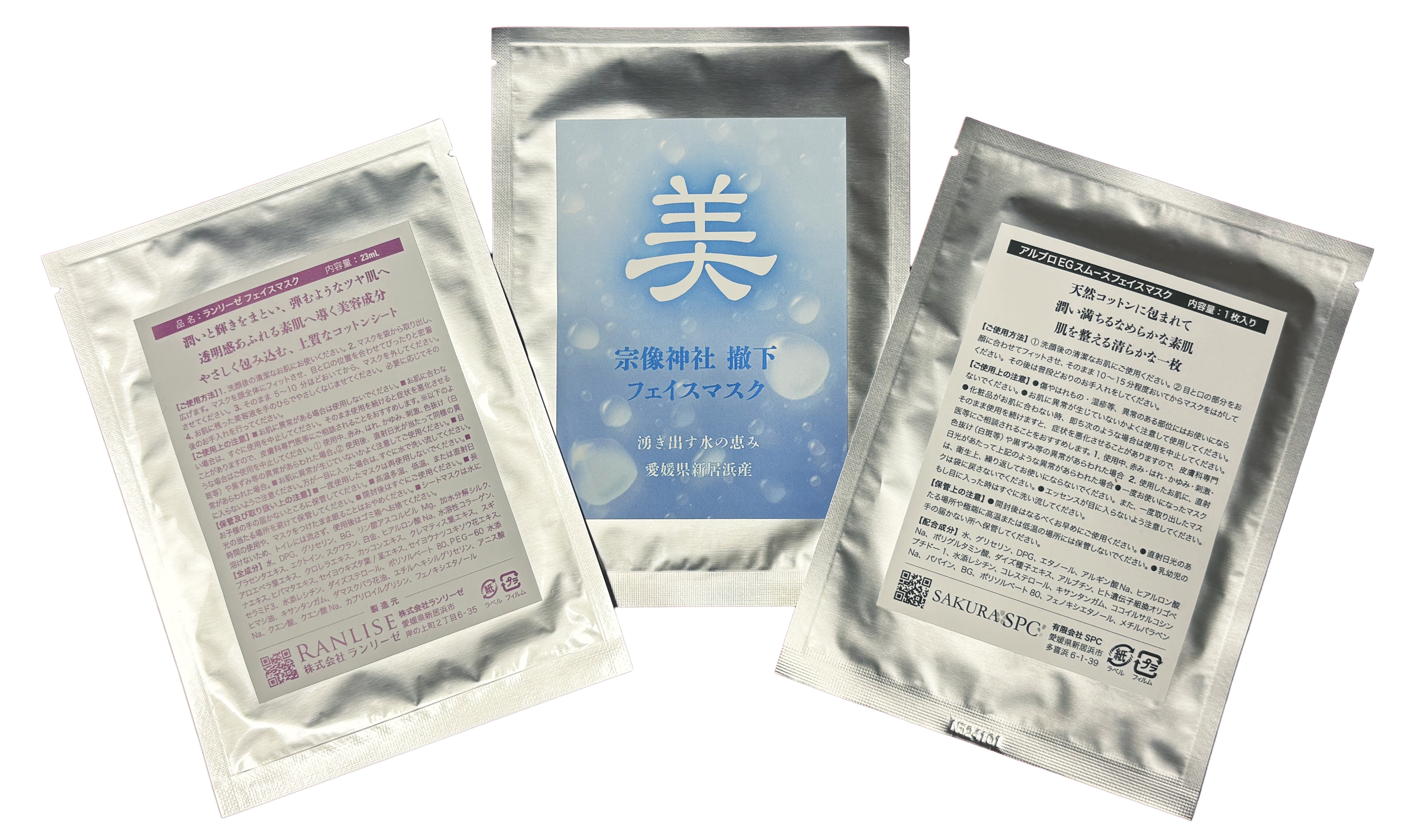 そのうち2社のフェイスマスク4枚を美容祈願された方にだけ、御神札と美し守りと一緒に授与しております。
